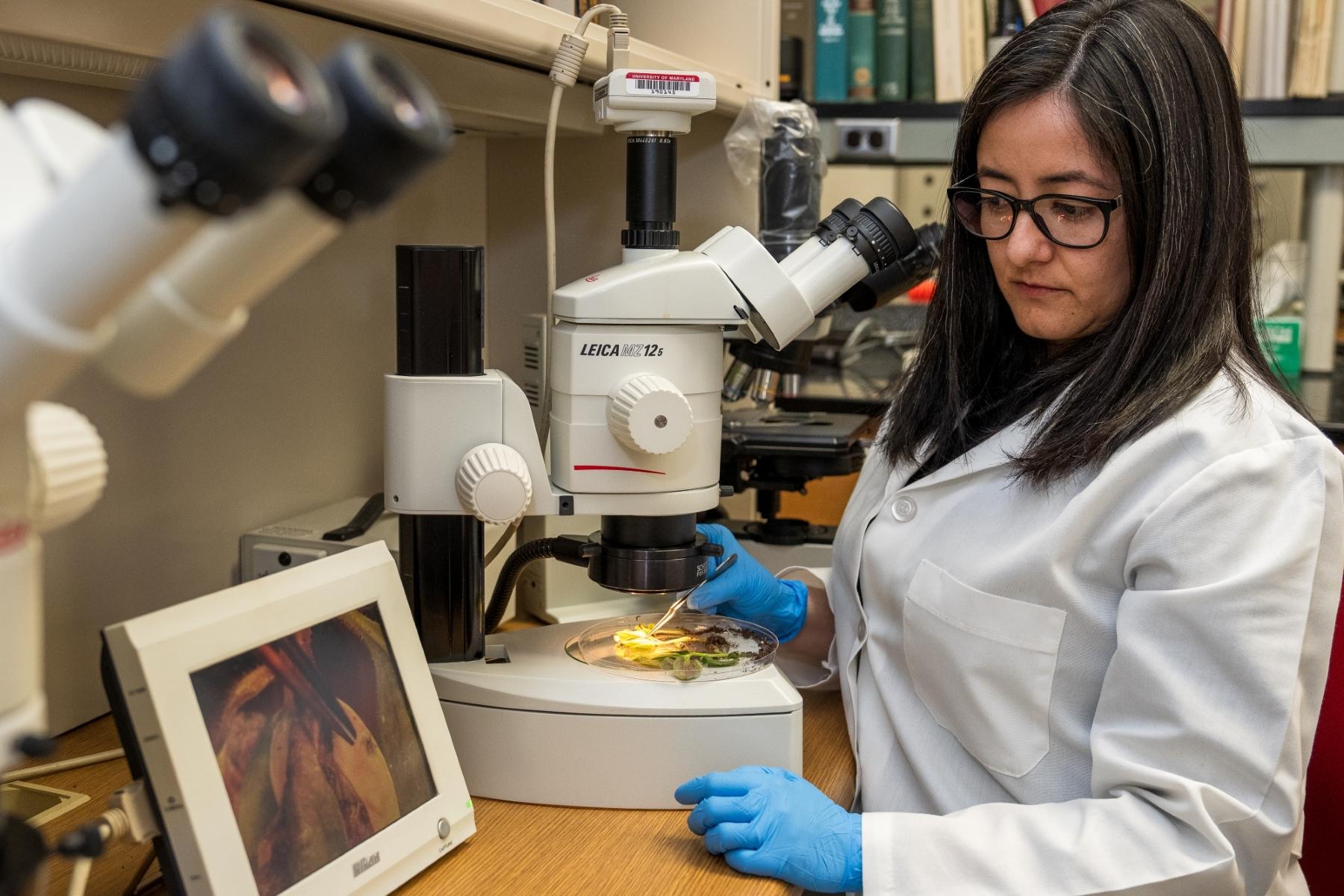 Ana Cristina Fulladolsa, affiliate faculty with the Department of Plant Science and Landscape Architecture, is making waves at the University of Maryland’s Plant Diagnostic Laboratory known as the campus Plant Hospital. As an Assistant Research Professor in Entomology, she has led the laboratory since 2025, building on its legacy as a vital regional resource for plant diagnostics and health. Under Dr. Fulladolsa’s guidance, the Plant Hospital operates like a clinic for plants: receiving samples from nursery owners, vegetable growers, and landscapers across Maryland. Each case—whether it’s yellowing leaves, mysterious spots, or wilting stems—is examined through a combination of visual inspection, microscopic analysis, and advanced DNA sequencing techniques. “In a regular hospital, they’d ask you what you feel and examine you to find out what’s wrong. That’s exactly what we do—but plants can’t talk,so we have to gather as much information as we can through other means.” Fulladolsa explains.