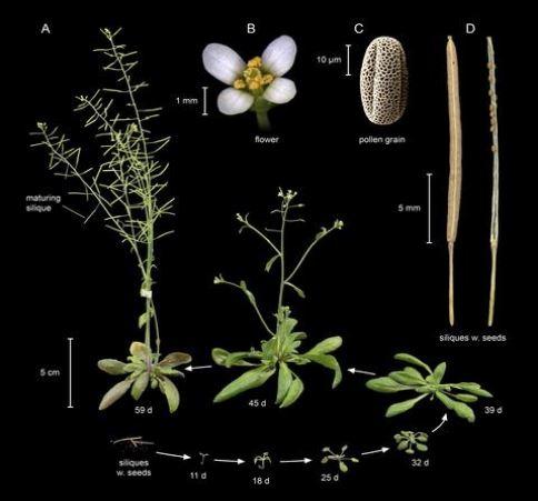 Figure 1. The life cycle of A. thaliana plants. Pictorial depiction from seed to reproductive growth. (Kramer, 2015)