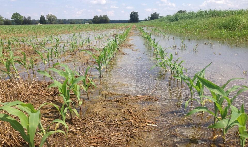 Low-lying cornfields near the Chesapeake Bay are inundated with saltwater