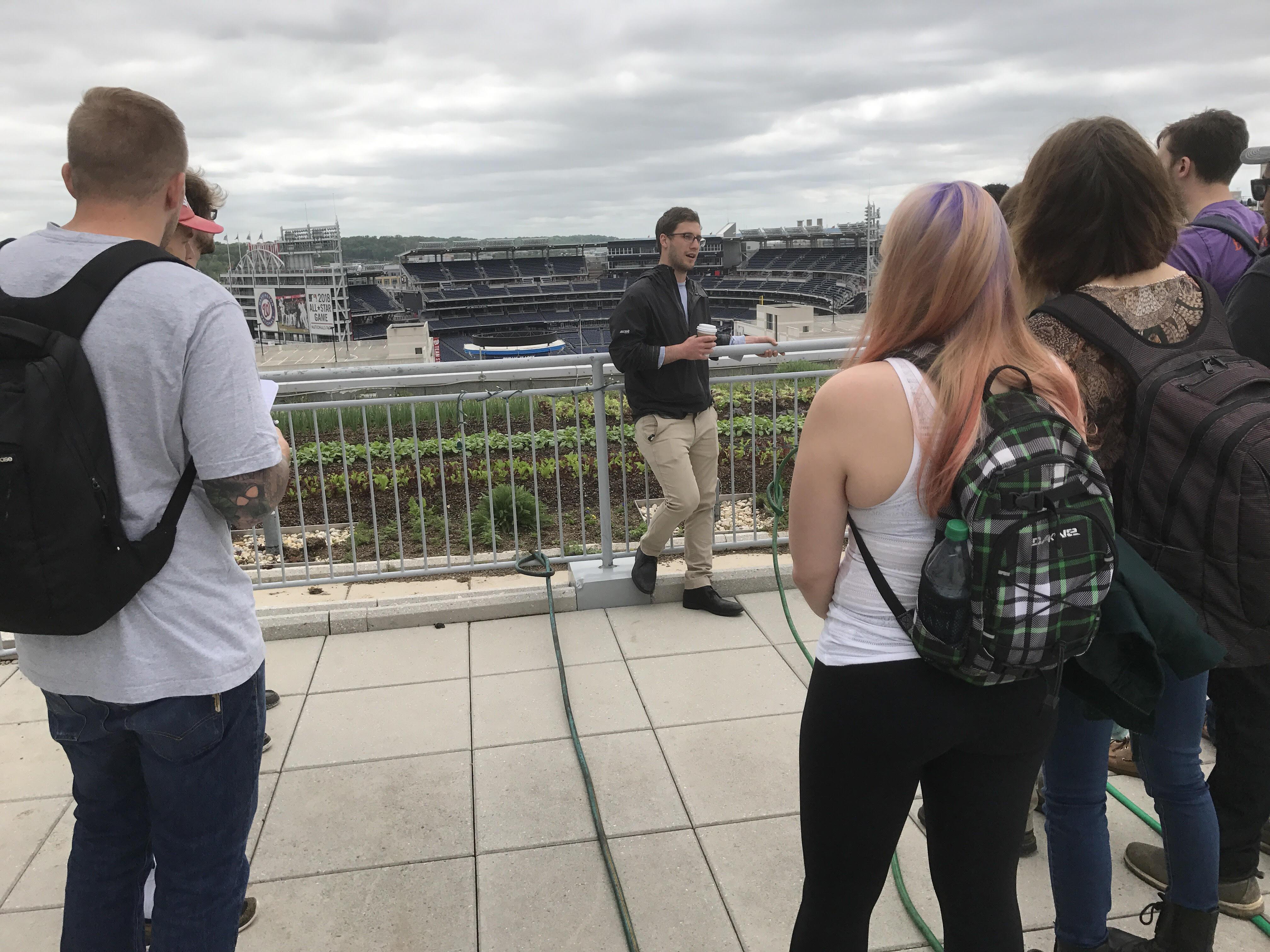 Picture above: Environmental Horticulture (PLSC 452) students learning about urban farming on roof tops from one of the owners, Jeff Prost-Greene.