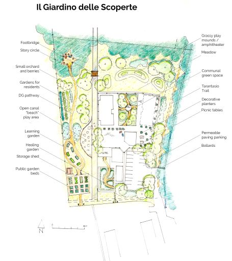 Working with residents, social workers, and local environmental and agricultural experts, the team envisioned a network of gardens, outdoor gathering spaces, and sensory landscapes designed to strengthen the Villaggio’s therapeutic and educational mission. These “landscape affordances” – places that offer care, reflection, and recreation – are intended to provide residents and social workers with new opportunities to connect with nature and one another. They also support ecological regeneration and stewardship by enhancing habitat continuity, pollinator corridors, and soil and water quality.